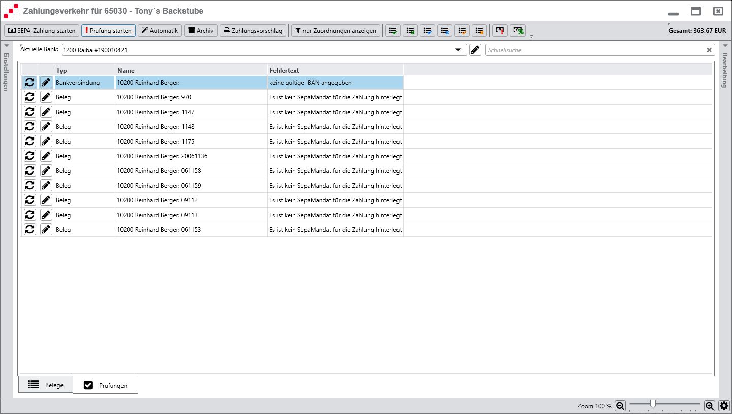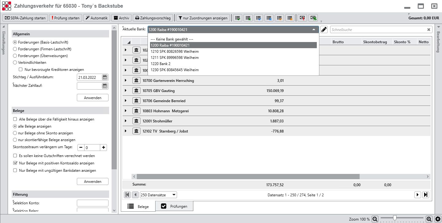 Komplett in den gesamten Rechnungswesenprozess eingebettet, kann der Zahlungsverkehr in den verschiedensten Optionen und Prozessen genutzt werden. Täglich bzw. permanent, um automatisch die eingestellten offenen Posten mit dem SEPA Zahlungsverkehr abgleichen zu können. Wöchentlich oder in individuell gestaltbaren Perioden.